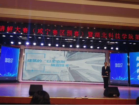刘贞贞从较为专业的角度讲解了传统抗震技术的弊端以及隔震新技术可以较大程度减轻地震灾害中房屋的破坏,并举例说明了隔震技术在国内的应用情况。柯灿华以朴实的语言,为大家讲解无人机摄影测量的原理,并举例说明了无人机摄影测量在城市规划、电力巡检、智慧城市等方面的应用。经过激烈的比拼,刘贞贞荣获大赛一等奖,柯灿华荣获三等奖。刘贞贞同学将代表咸宁市参加湖北省科普讲解大赛。